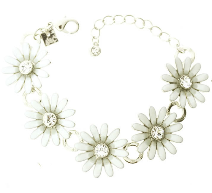 Five Flower bracelet from the Daisy collection. Adjustable 160-220mm, flowers measure 25mm across. White/Silver