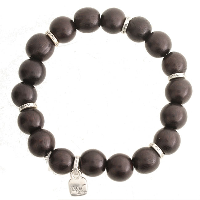 Elasticated Charm Bracelet, the charms hang on the metal loops in between the beads. Brown/Silver colourway.