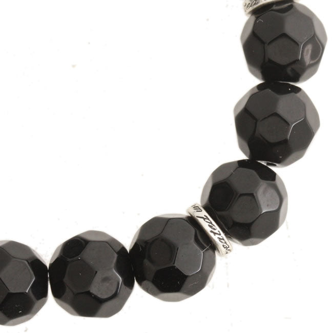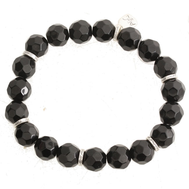 Elasticated Charm Bracelet, the charms hang on the metal loops in between the beads. Black/Silver colourway.