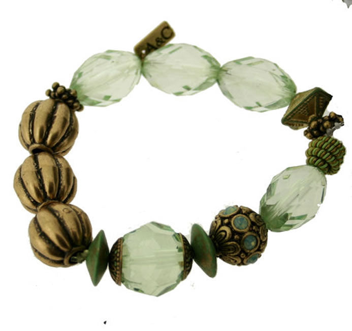 A&C Ethnic Dream Elasticated Bracelet, Green/Gold