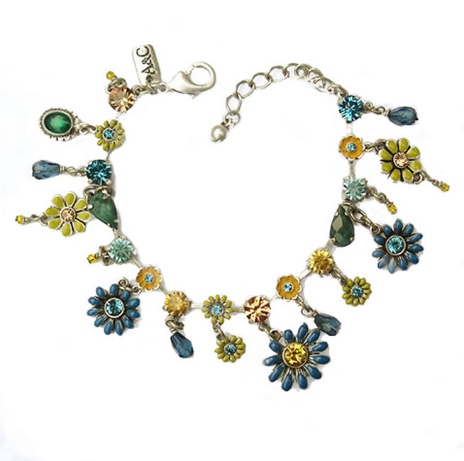A&C Fab Flowers Beautiful Bracelet, Blue/Yellow/Silver