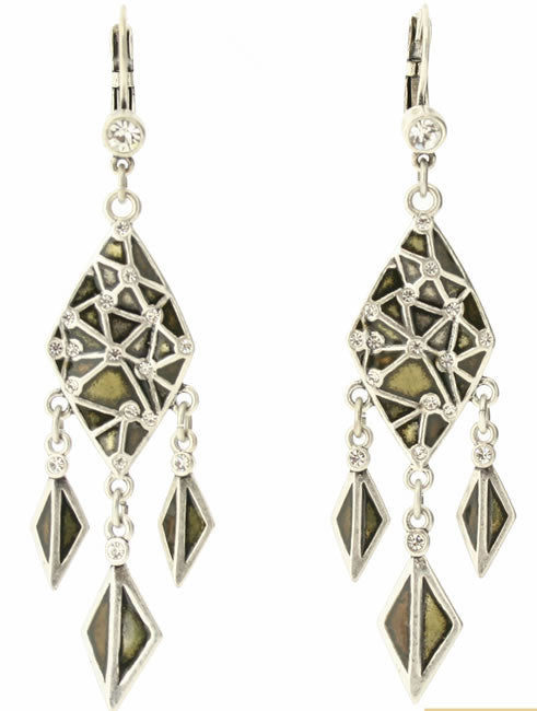 Gorgeous, long drop earrings from the Facettes collection. Total drop from French hook fastening 81mm. Brown/silver colourway