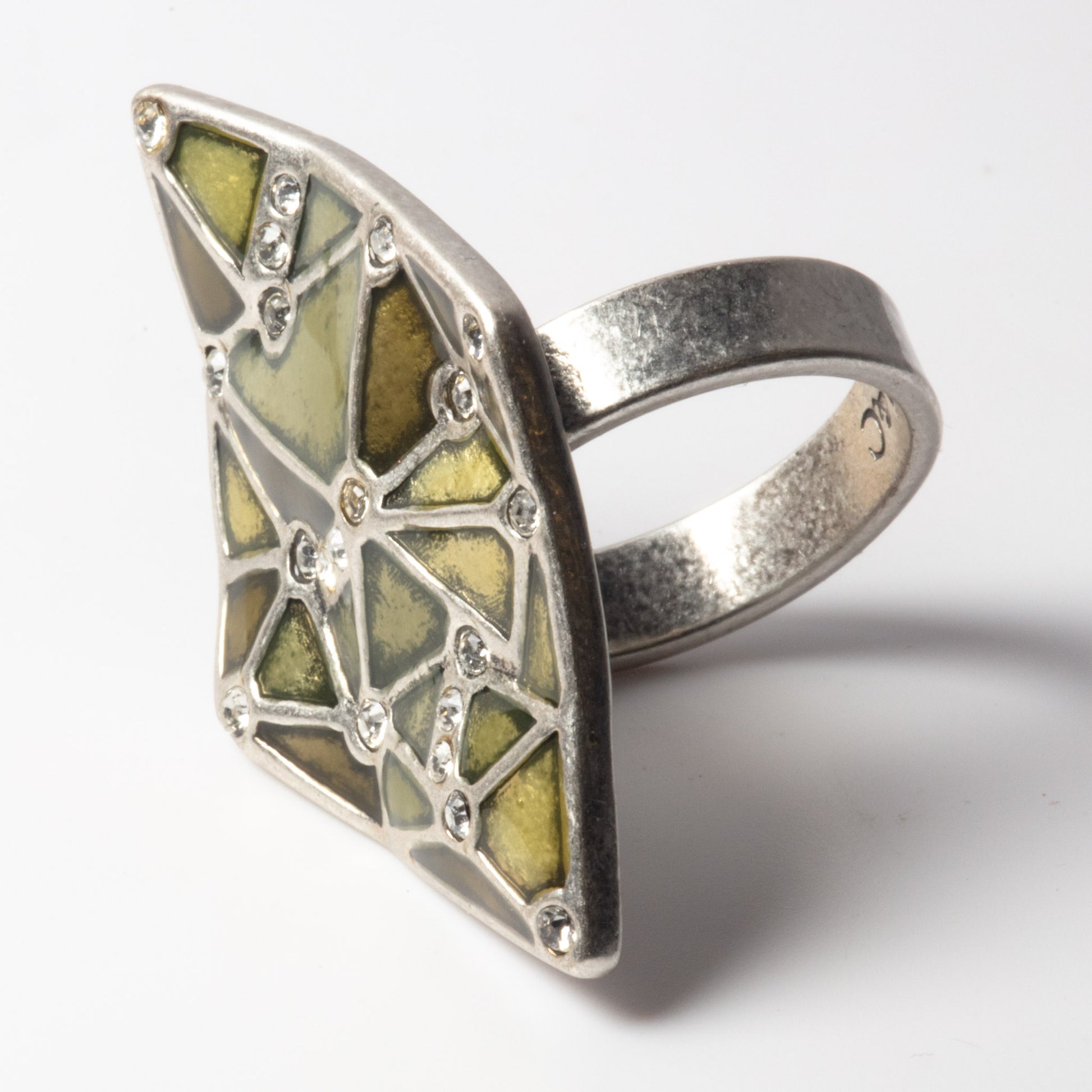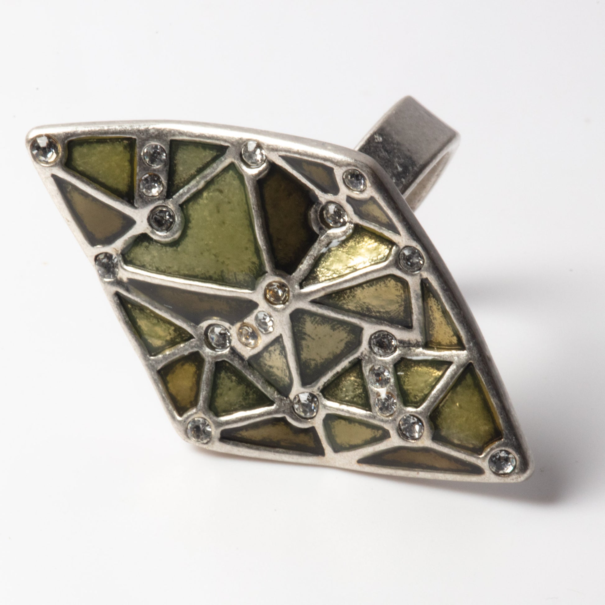Late-1990s statement jewellery featuring sculptural geometry, decorative enamel and crystal accents.