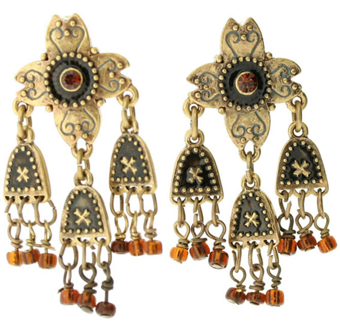 A&C Folklore Stunning Ornamental earrings, Smoke/Black/Gold
