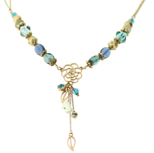 Elaborate Necklace from the Globe Trotter collection with beads and twin chains. Adjustable 415-495mm, 80mm drop from chain. Turquoise/Gold