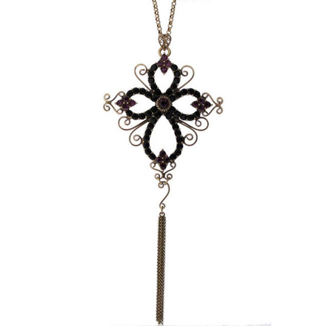 A&C Gothic Cross Very Long Necklace Purple/Black/Gold