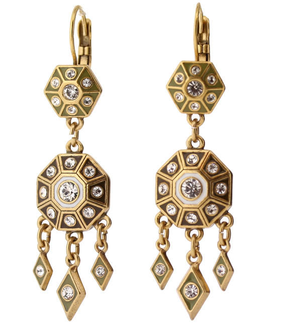 Elaborate French hook and drop earrings from the Kaleidoscope collection. Earrings measure 61mm. Gold colourway.