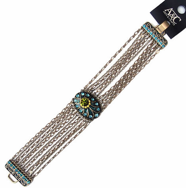 Bracelet from the Peacock collection in Green/Blue/Gold 31 Swarovski crystals total. 25mm wide (length 180mm)