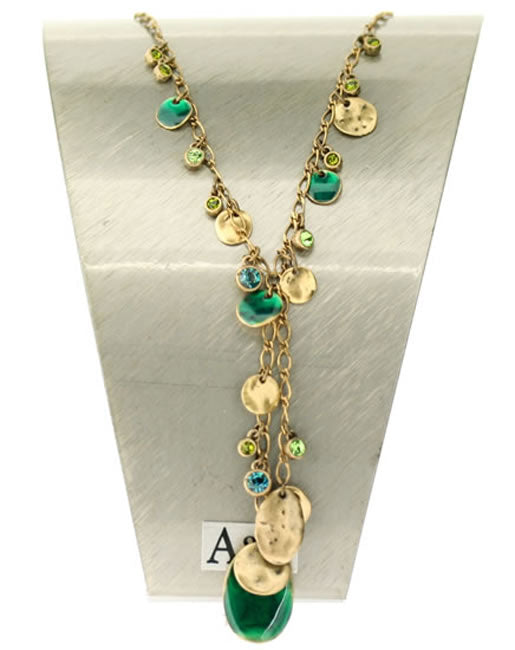 A&C Shabby Metal Beautiful Drop Necklace, Teal/Gold