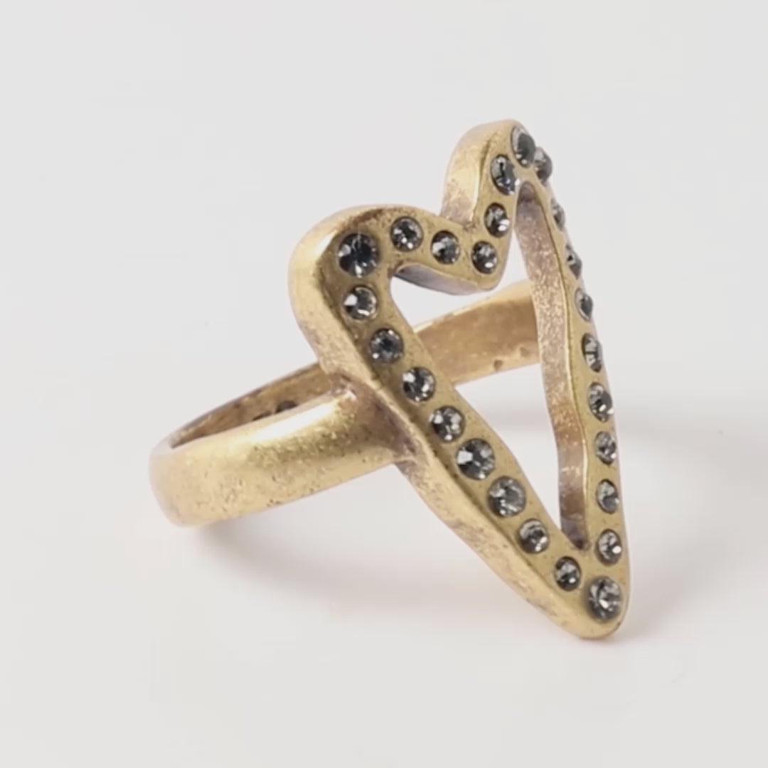 A&C Style Crystal Heart Ring – Gold Tone