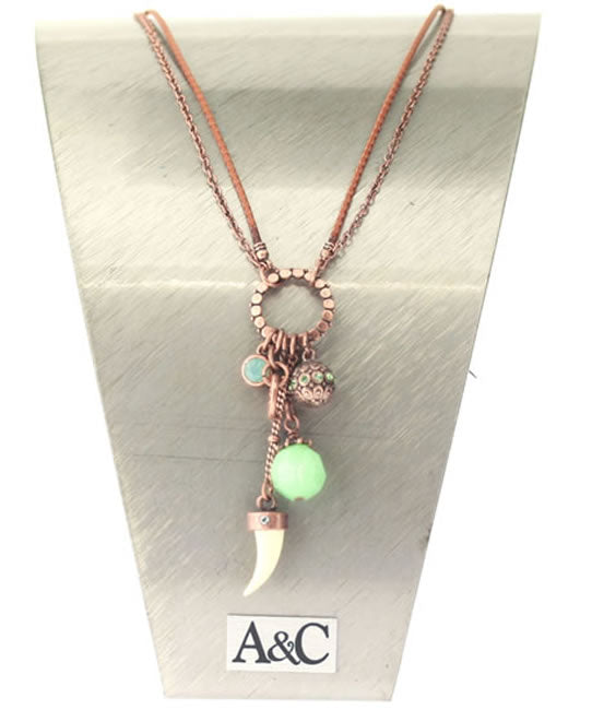 A&C Zanzibar Charm Drop Necklace, Mint/Copper