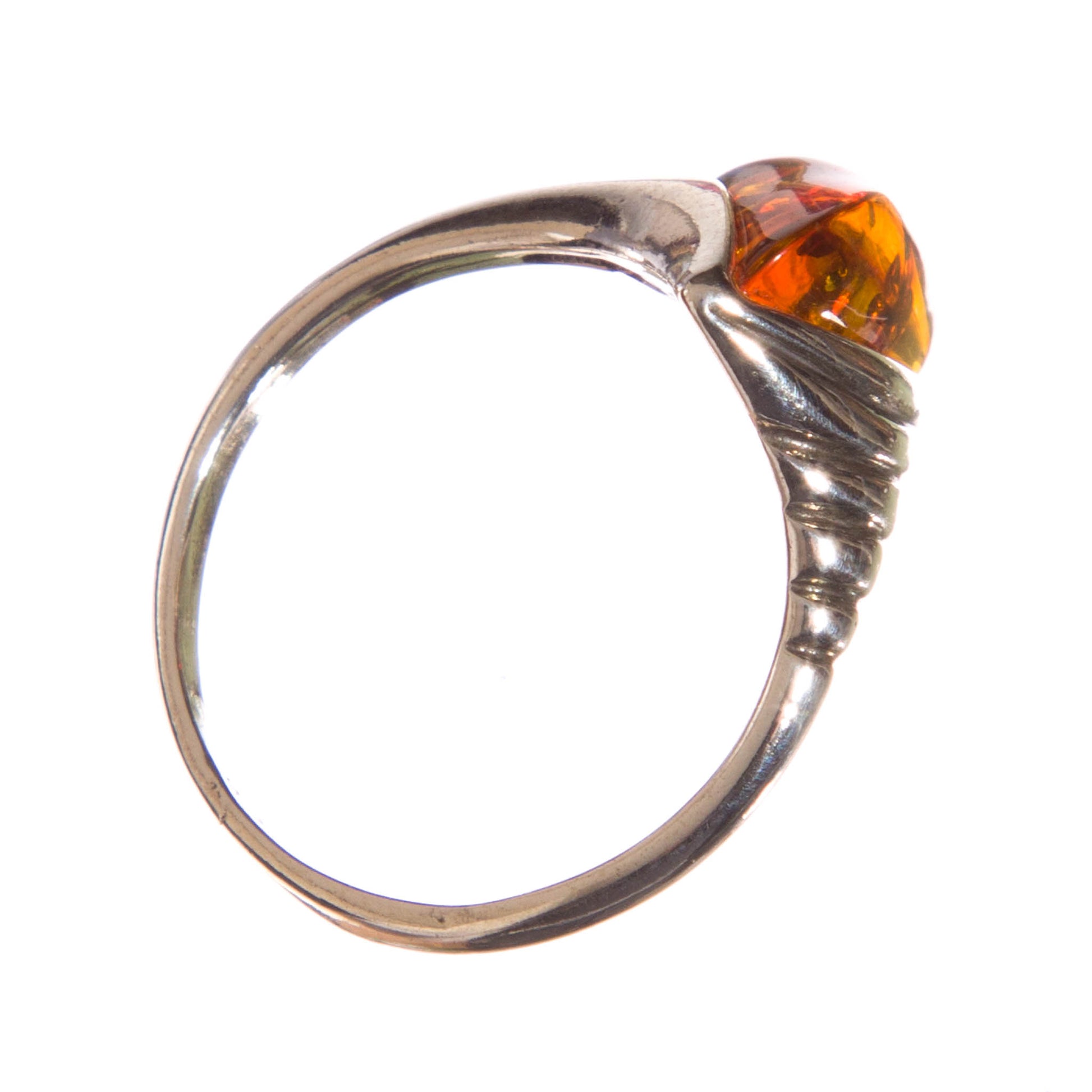 This amber ring boasts a weight of 2 grams, making it a lightweight and elegant choice. Made with sterling silver, it features an ornate design that exudes sophistication and charm.