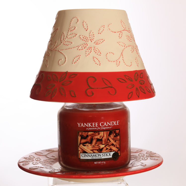 Yankee Candle Shade and tray for Medium Large Candles, Red/White/Gold