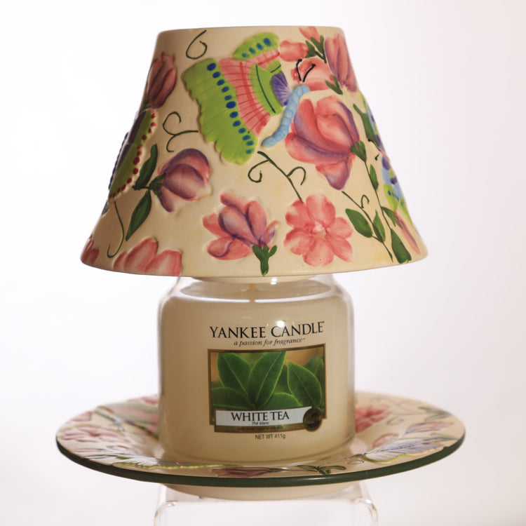 Yankee Candle Shade and tray for Medium Large Candles, Butterflies and Flowers