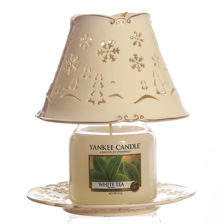 Yankee Candle Shade and tray for Medium Large Candles, Snow Flakes