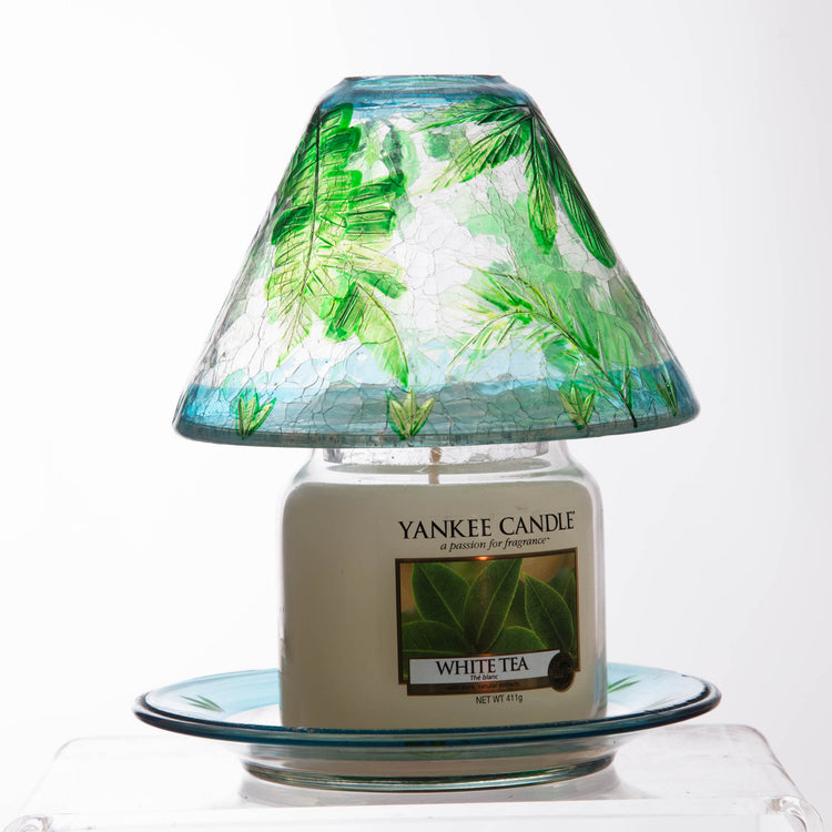 Yankee Candle Shade and tray for Medium Large Candles Green Leaves, Glass