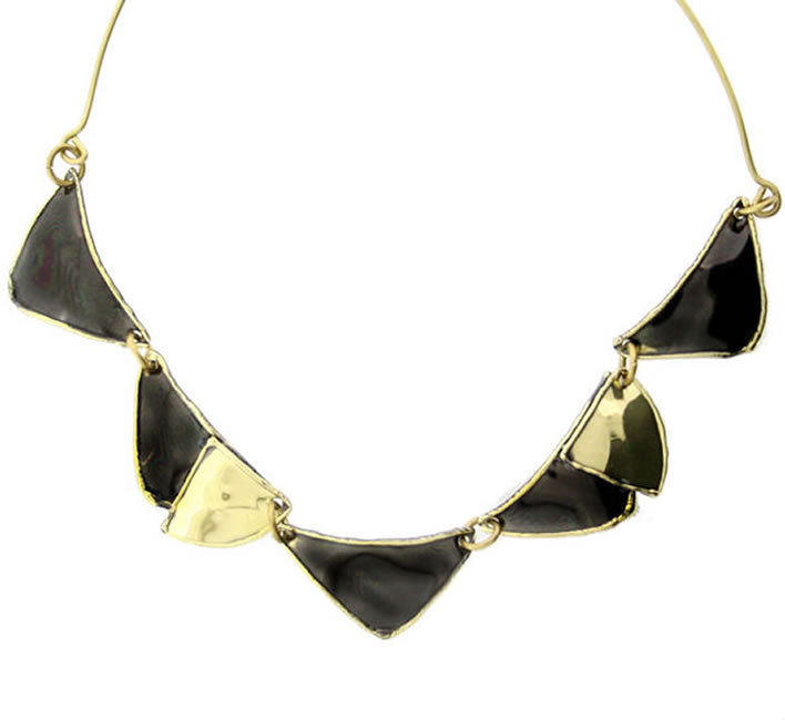 Brass triangular necklace with high gloss black enamel (Centre triangle 43 x 24mm)