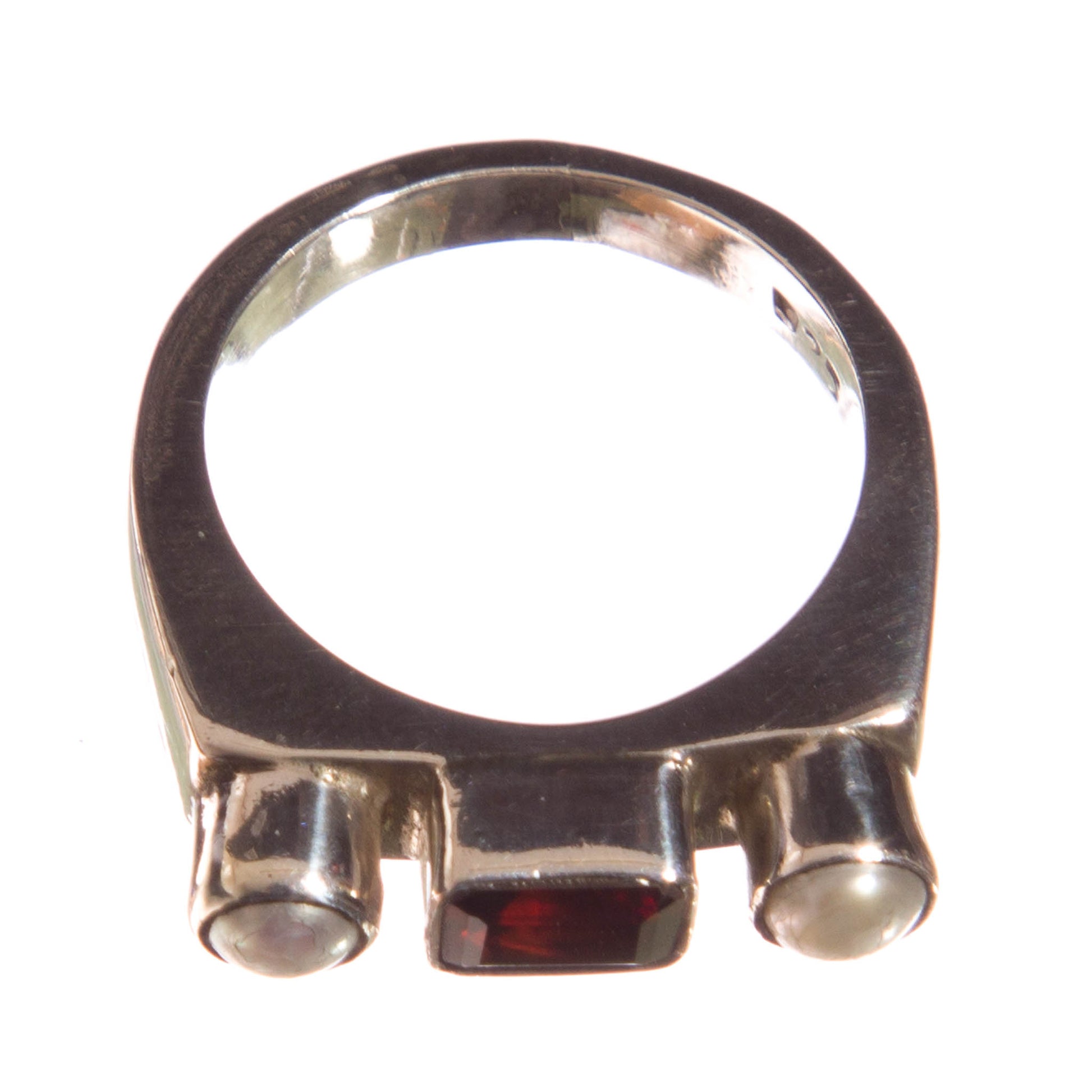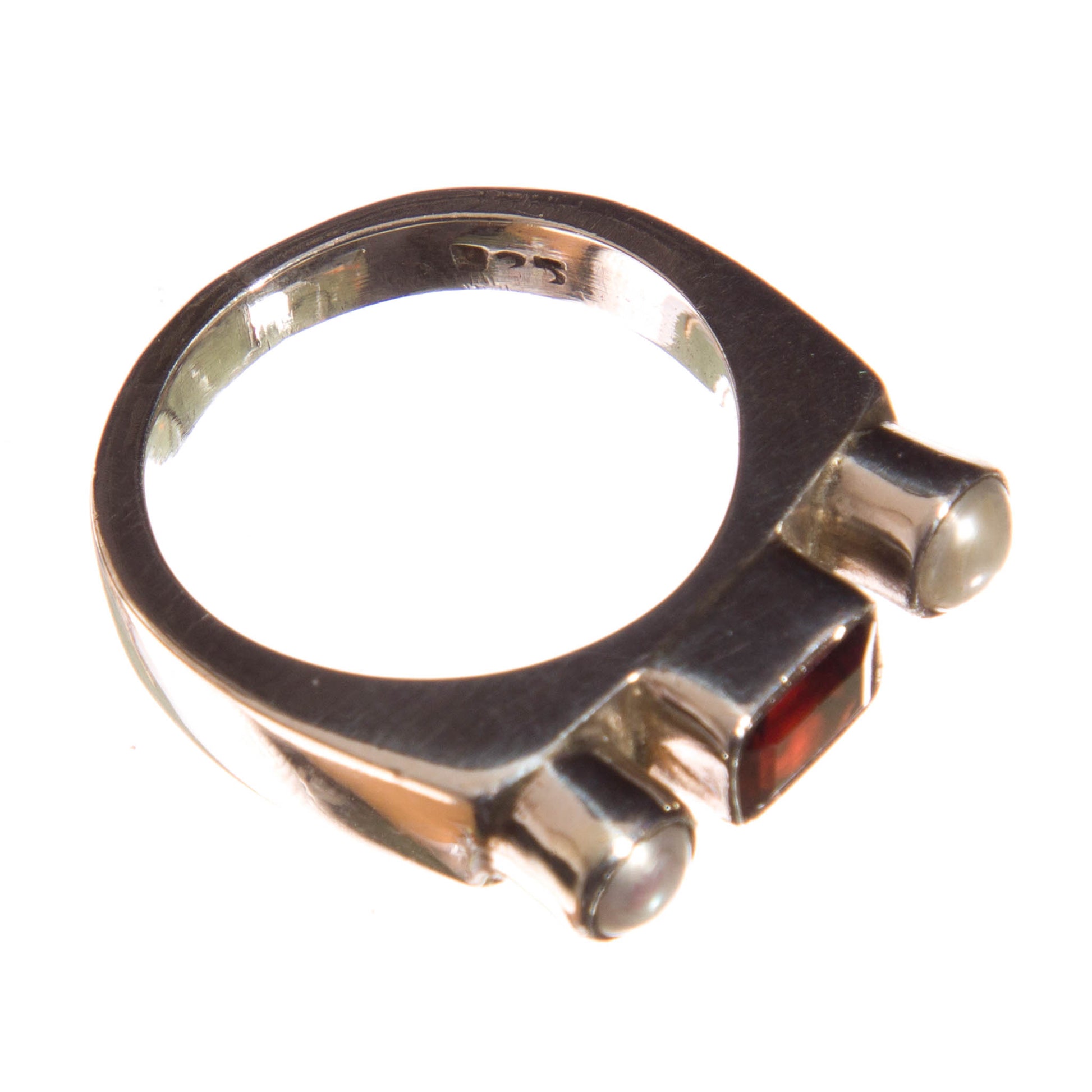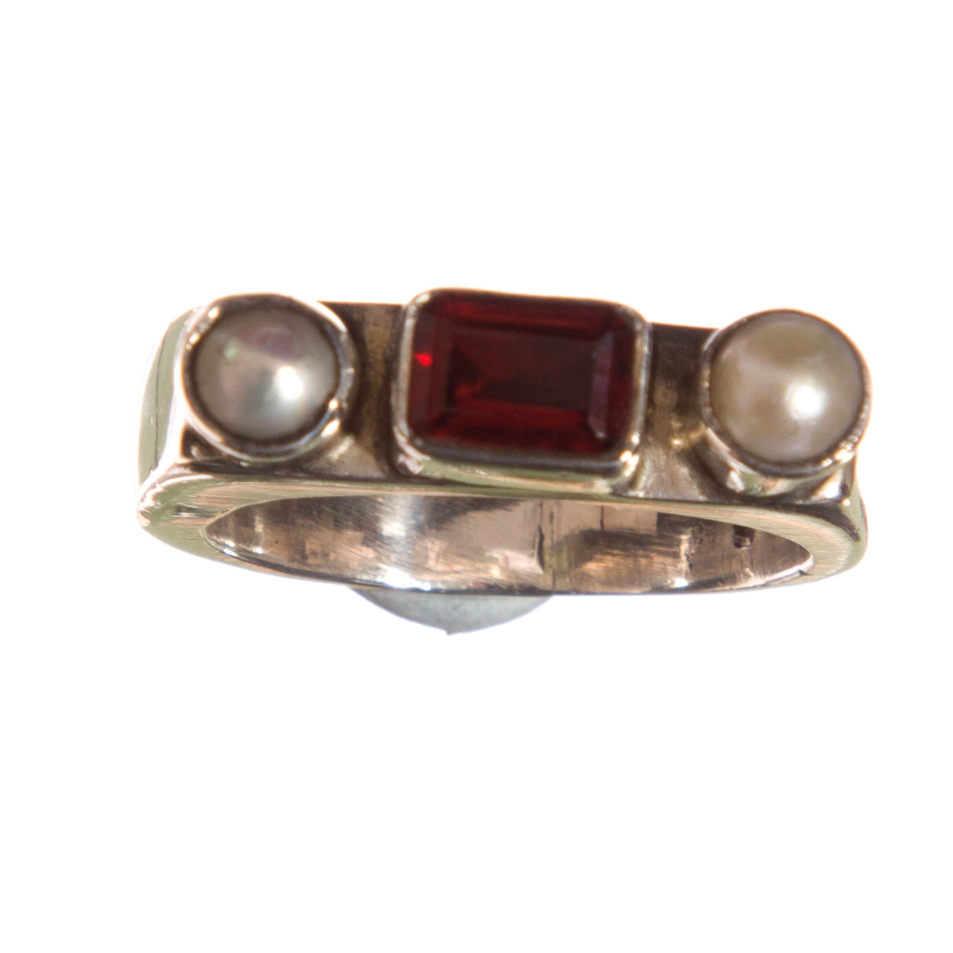 Garnet Ring. Garnet measures 6x4mm. Pearls 5mm Weight 7 grammes