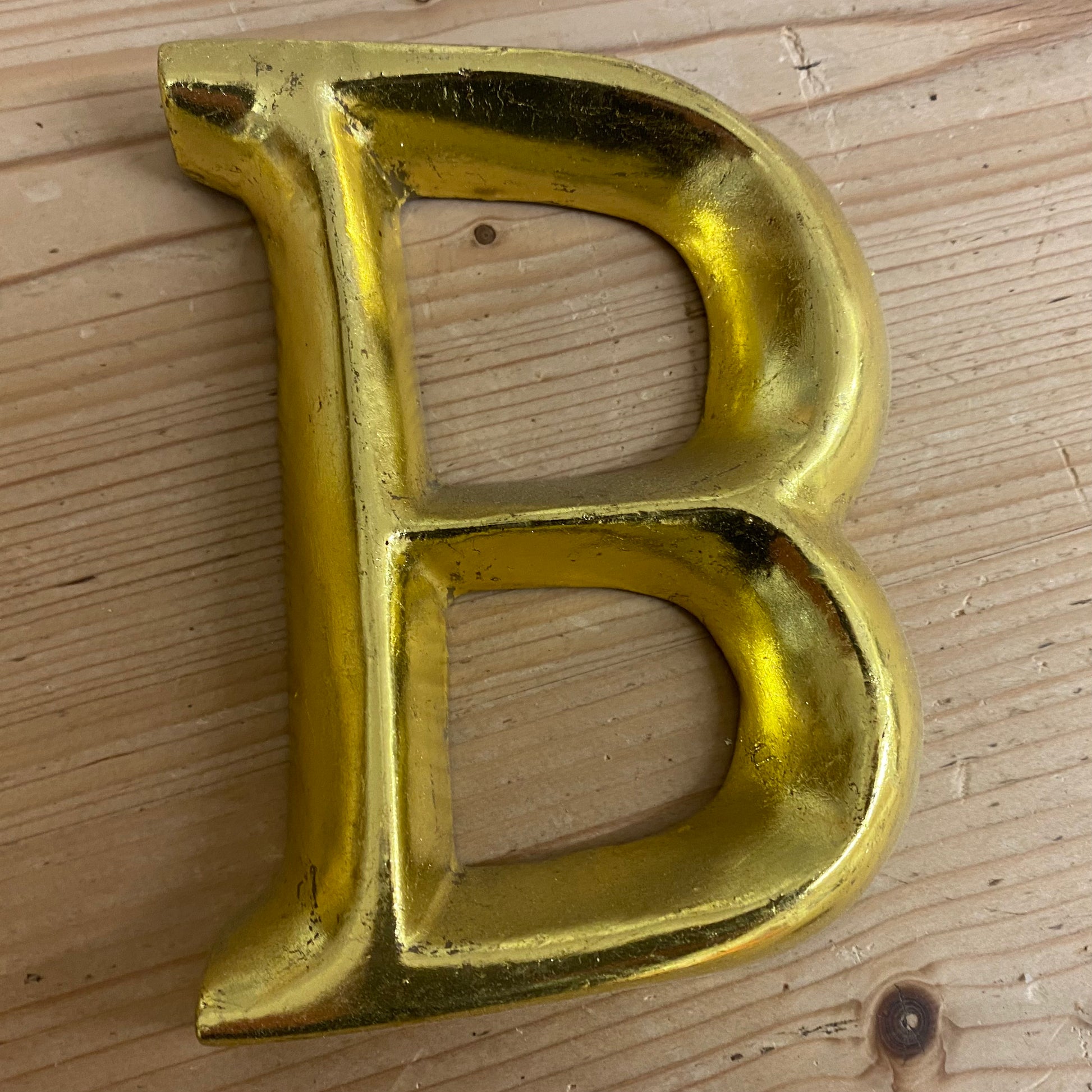 These letters are hand made from wood and then guilded. Because of this they are not all perfectly formed like they would be if made by a machine. They come with all the irregularities expected from a hand made product. This is a photo of the actual letter you are buying.