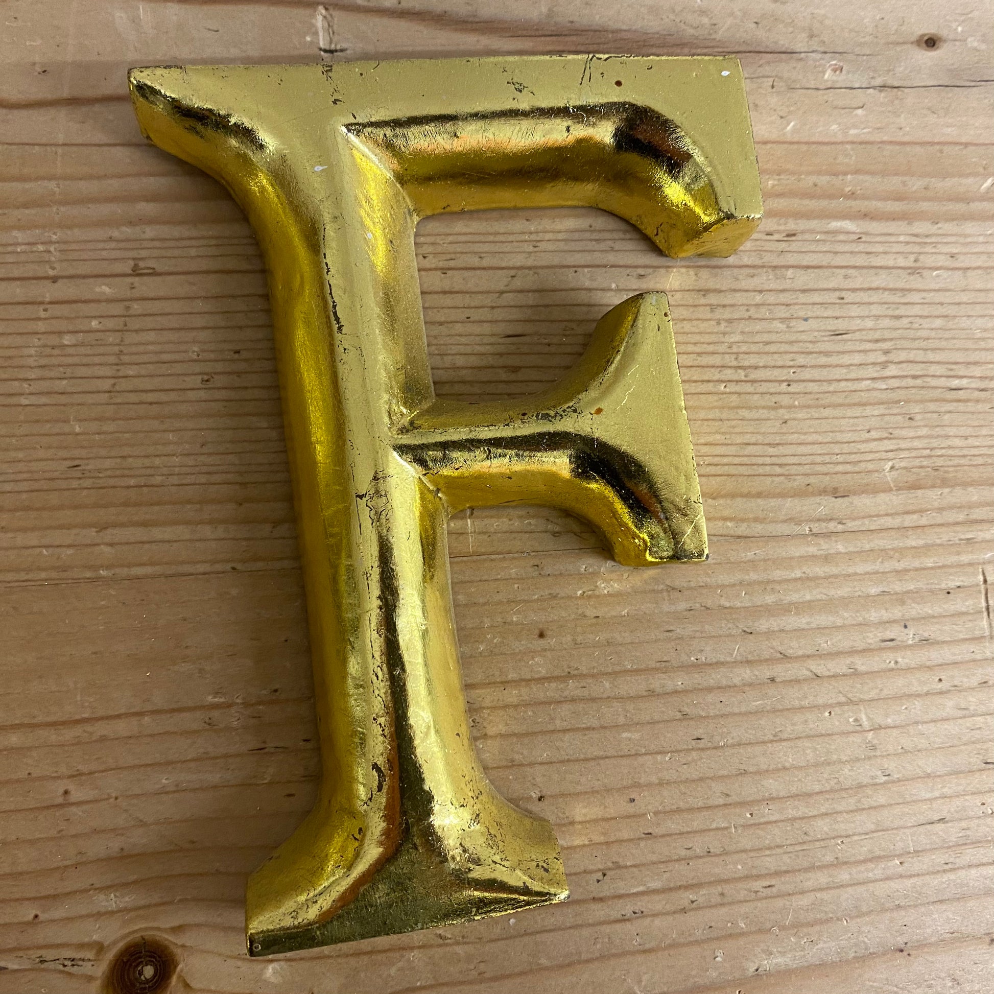 These letters are hand made from wood and then guilded. Because of this they are not all perfectly formed like they would be if made by a machine. They come with all the irregularities expected from a hand made product. This is a photo of the actual letter you are buying.