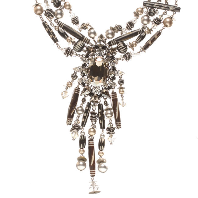 Stunning Elaborate Necklace from the Ad Originum collection, centre drop 130mm (5.25 inches) adjustable length 380-460mm (15-18inches) Black/Silver