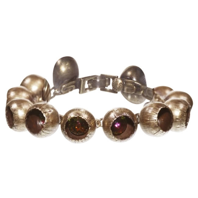 Another Stunning Bracelet from the Cocoon collection.Each cocoon measures 120mm across. Length 165mm (6.5inches) Green/Gold
