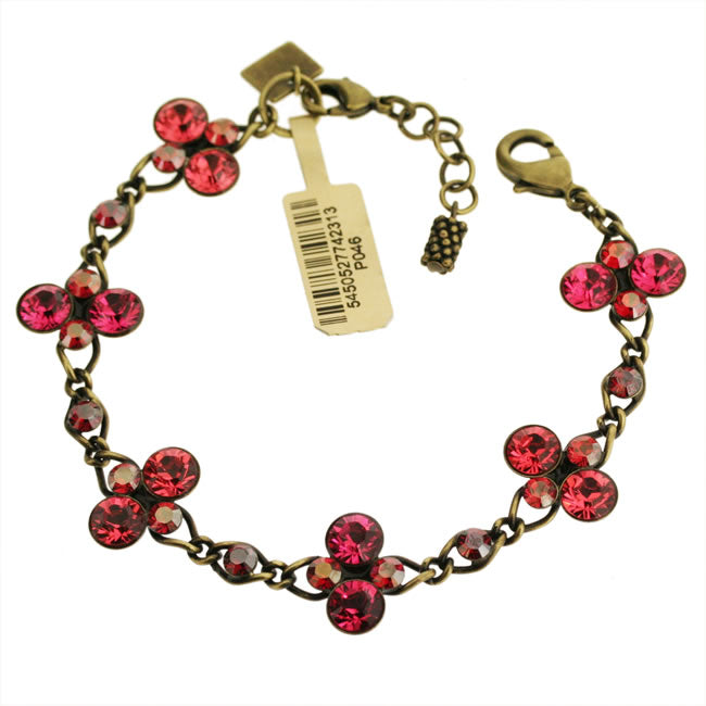 Crystal Bracelet from the Disco Star collection 180mm (7 inch) long plus a 25mm (1 inch) extention chain as shown, Coral/Gold