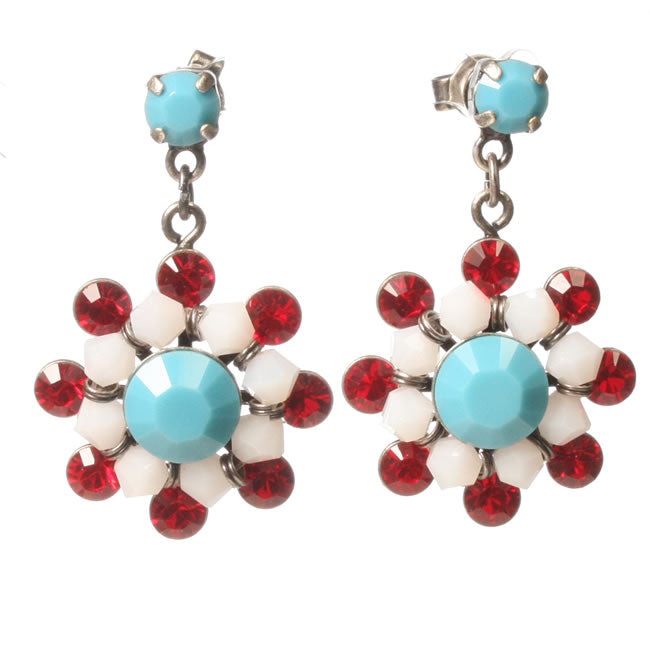 Konplott, Dutchess Stud Drop Earrings, Blue/Opal/Red/Silver