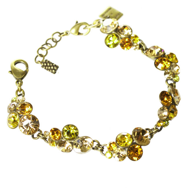 A sparkly bracelet from the Petit Glamour, collection each crystal cluster measures 25 x 15mm (1x0.6 inch), The length is 185mm (7.25 inches) Orange/Yellow/Gold