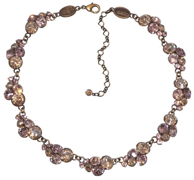 A rather wonderful all around necklace from the Petit Glamour collection, each crystal cluster measures 25 x 15mm (1x0.6 inch), adjustable 365-445mm (14.3-17.5 inches) Peach/Gold