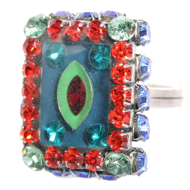 Konplott, Souvenir D Afrique Crystal Adjustable Ring, Blue/Multi/Silver