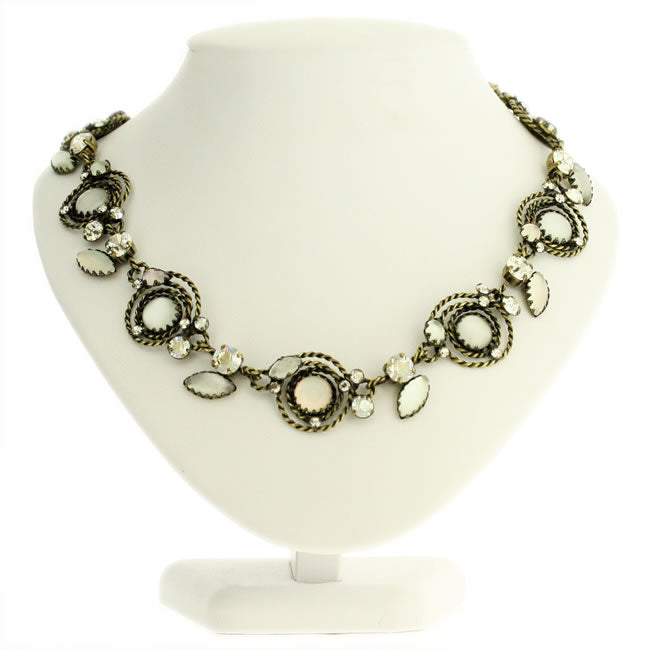 Most Elaborate allround Necklace from the Twisted Lady Collection, 25mm (1inch) wide and adjustable chain length 47-55cm (18, 5-22 inches), White/Crystal/Gold