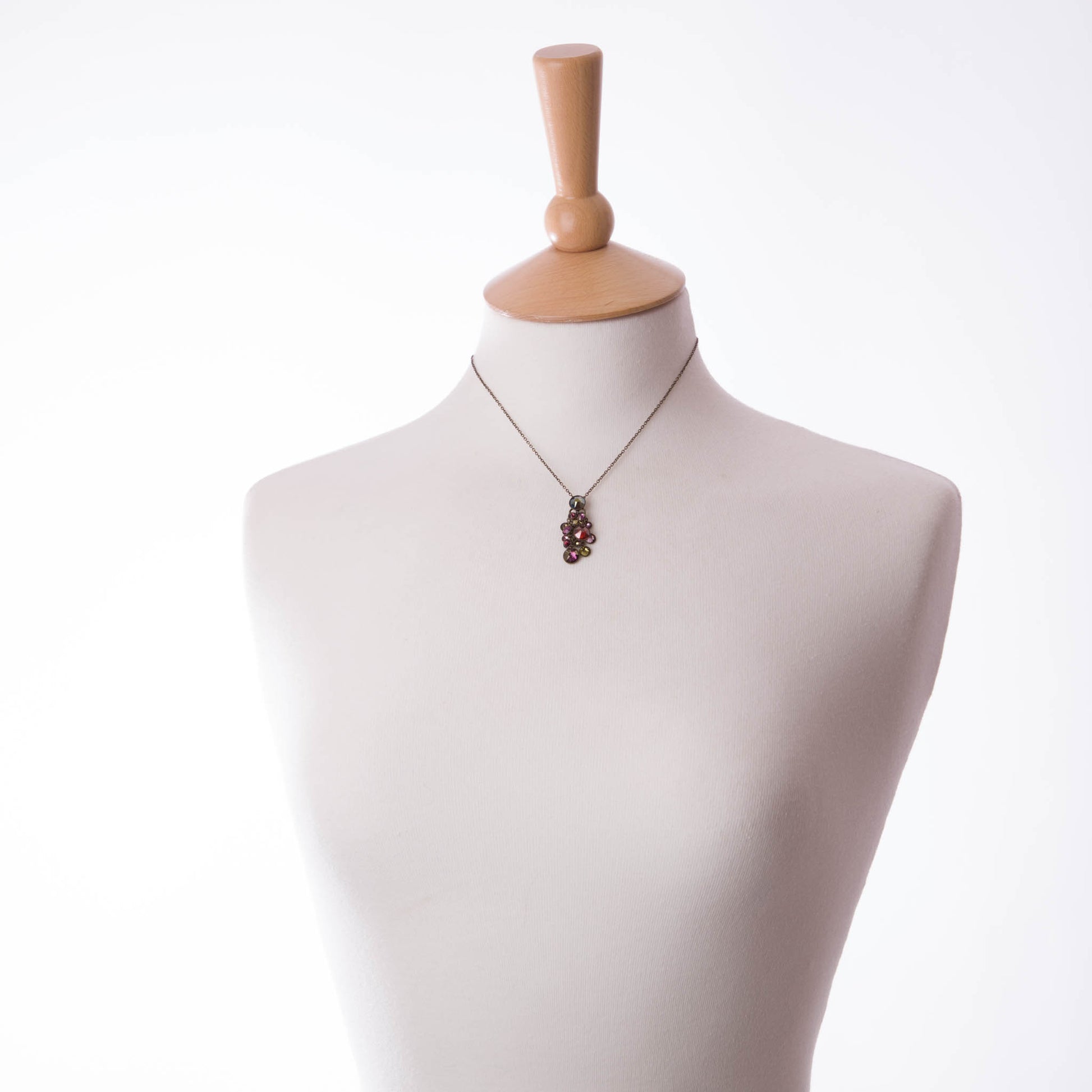 Crystal Bunch Pendant Necklace from the Waterfalls collection. The centre drop measures 33mm (1.3 inch). Adjustable chain 39-48cm (16-19 inches). Dark Multi/Gold