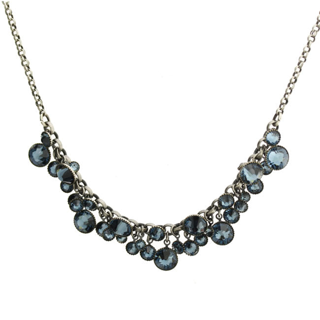 Crystal Extravaganza Necklace from the Waterfalls collection. Largest crystals diameter measures 7mm (0.25 inch). Adjustable chain 39-48cm (16-19 inches). Light Blue/Silver