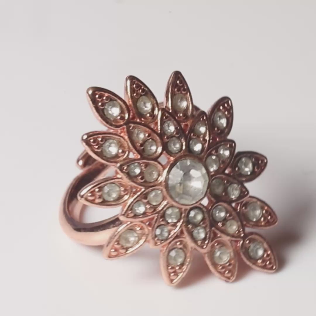 Adjustable Start Burst Ring, 35 x 25mm (1.3x1 inch) , Crystal/Rose-Gold