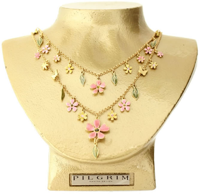 Pilgrim Blossom Twin Chain Necklace, Rose/Gold