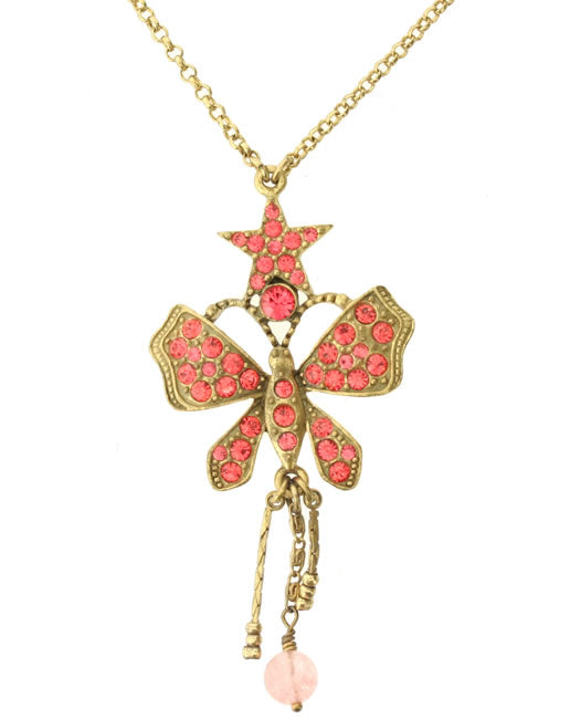 Butterfly and Star Necklace in Coral/Gold 55mm drop, 30mm wingspan (adjustable 355-425mm)