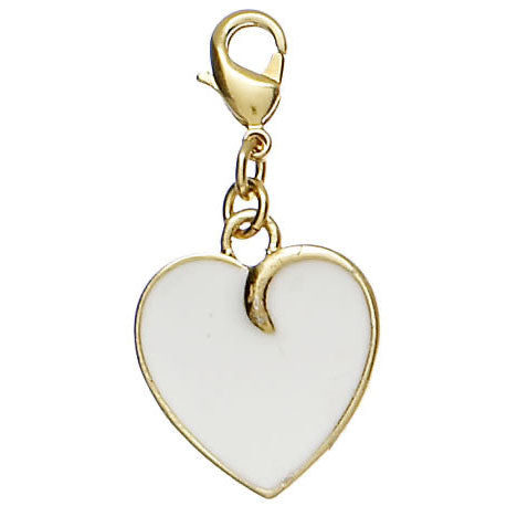 Candy Heart Charm, 40mm drop. White/Gold