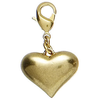 Puff Heart Charm, 30mm drop. Gold colourway.