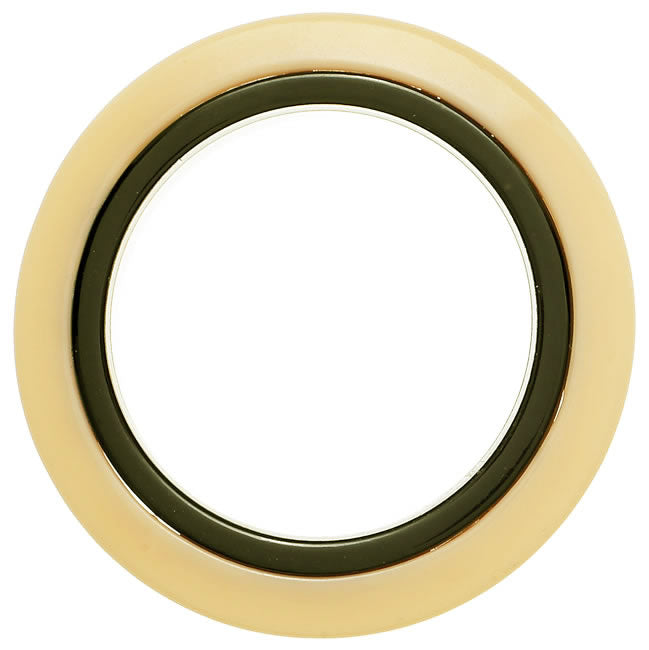 Acrylic wedge section bangle comprising of two layers of acrylic and one of metal. Measures 95mm wide and 8mm thick. Peach/Black/Silver colourway.
