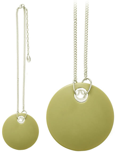 Pilgrim Circling Large acrylic disk pendant., Peach/Black/Silver