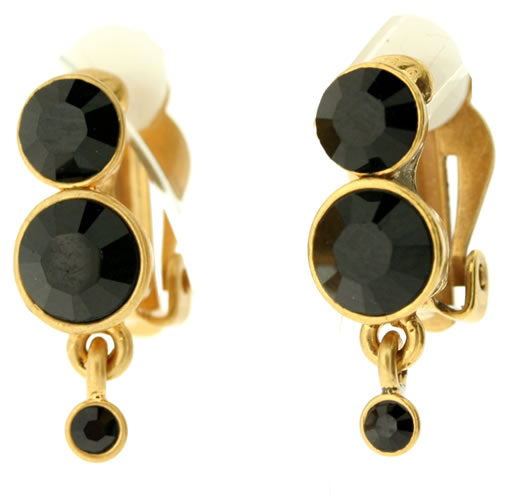 Classic Clip on Swarovski Crystal Earrings in black/gold (19mm drop)