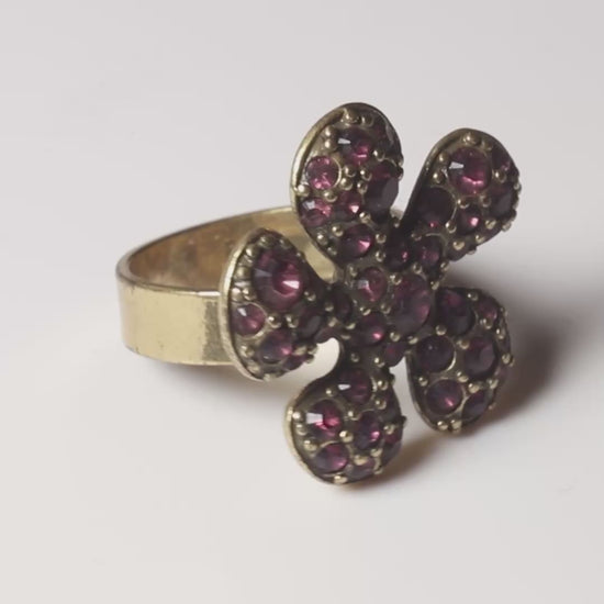 Classic five petal flower ring in purple/gold (26 mm across flower) adjustable