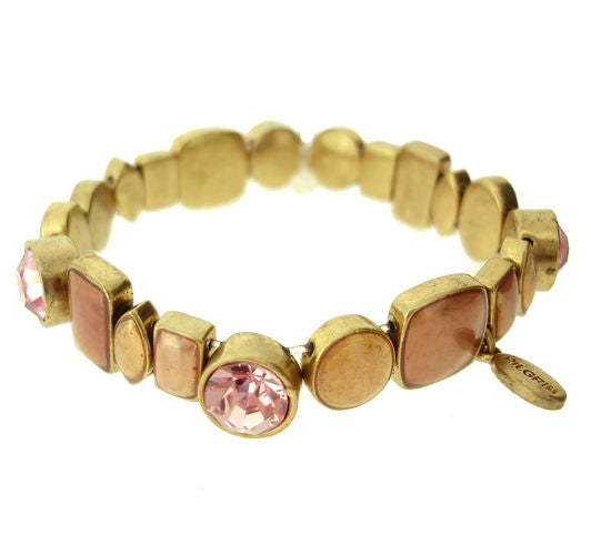 Classic bracelets collection in Rose/Gold.Elasticated and similar to the Geo but slightly larger with enamel squares and round Swarovski Crystals. The crystals measure approx 10mm diameter. The max width is 13mm.