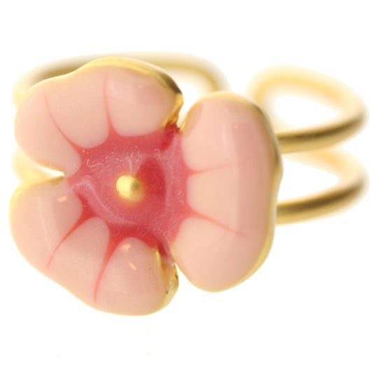 Toe Ring with a classic flower. Flower measures 14mm across. Rose/Green/Gold