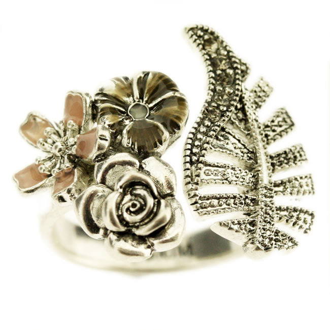 Adjustable Ring from the Floral Vibes collection, 25mm (1 Inch) across. Multi Mix/Silver.