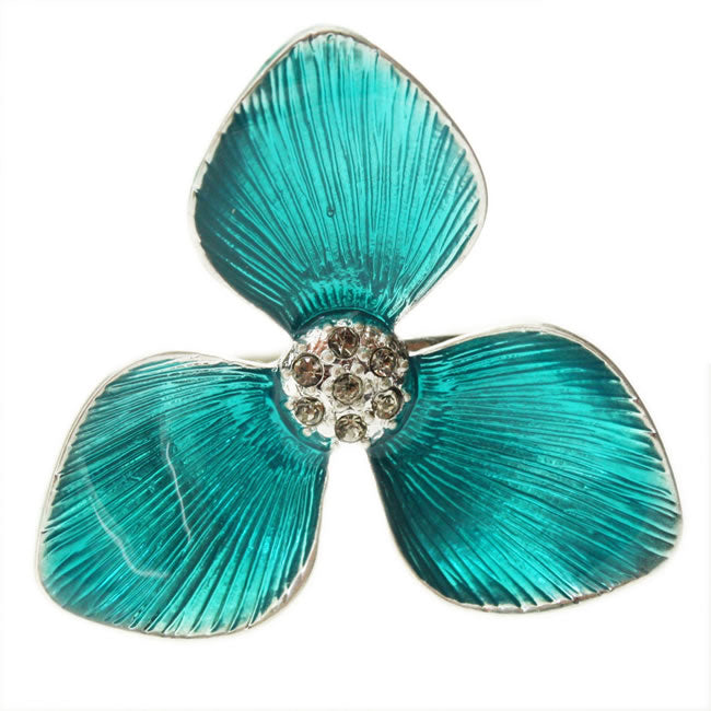 Ring from the Florette Collection, Flower measures 3cm (1.25inch) across, Adjustable Size, Turquoise/Silver