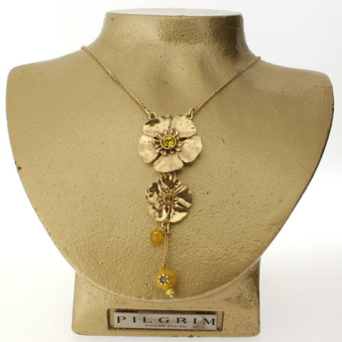 Pilgrim Flowered By Pilgrim Drop Necklace, Lime/Gold