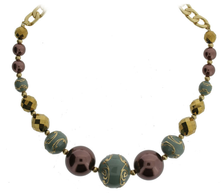 Most Elaborate Necklace from the Folklore Collection, the centre ball measures 20mm (0.8 inch) diameter, adjustable length 38-44cm (15-17.5 inches), Multi/Gold