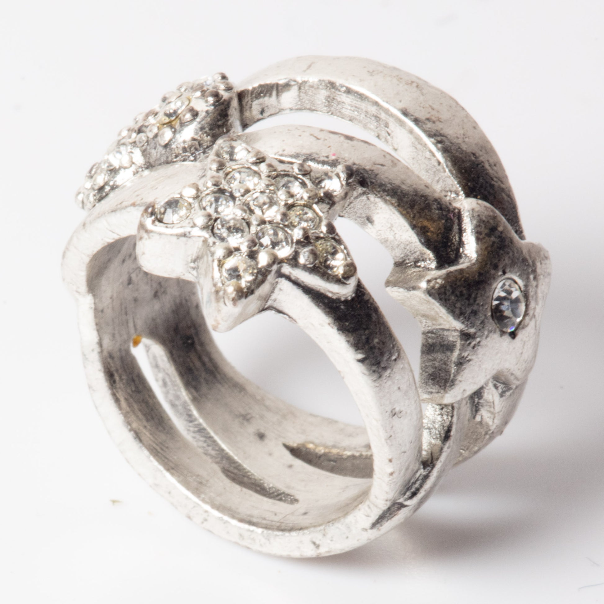 Star and heart ring in crystal/silver, width 25mm, Available in small, 50mm circumference